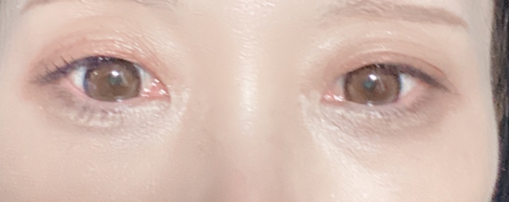 私はあんまりブラウン系のカラコン似合わなくて黒コンの方が得意なのですが、これは黄みの少ないブラウンで、黒コンに近い印象です。